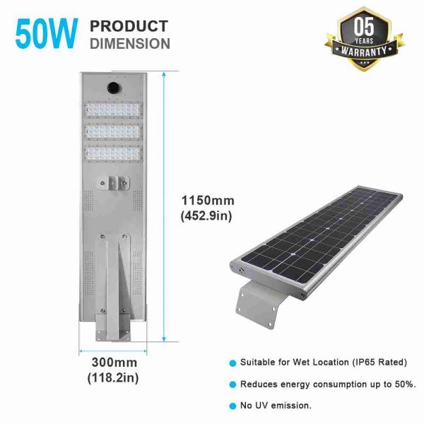 All In One LED Solar Street Light 50W 5000K IP65 with 3 years warranty