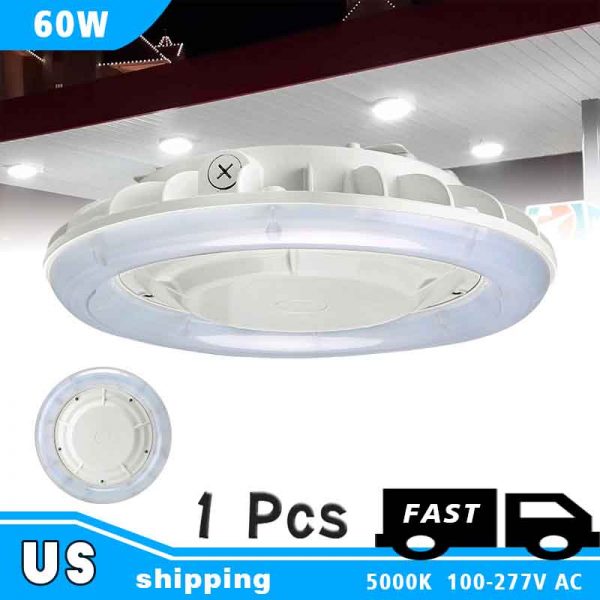 LED Canopy light Fixture, 60W 7100lm, 130W Metal Halide Equivalent, Surface mount with V-type light distribution, A versatile low-profile LED luminaire. Easy Mount and Clip installation, lower your energy costs, perfect for parking garage & carports.